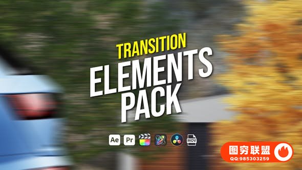 100个创意车辆树木路牌建筑墙体移动遮挡无缝转场过渡动画视频素材 Transition Elements Pack 有透明通道含音效,兼容于任何后期视频制作软件。含透明通道直接拖放到时间线上即可使用。