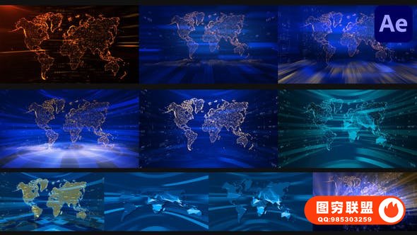 图穷联 » [AE模板]科技感新闻频道演播厅世界地图背景循环动画 Backgrounds For Ne