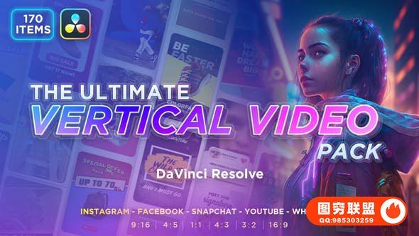 [达芬奇模板]170个竖屏封面海报图文排版宣传介绍展示动画模板预设 The Ultimate Vertical Video Pack