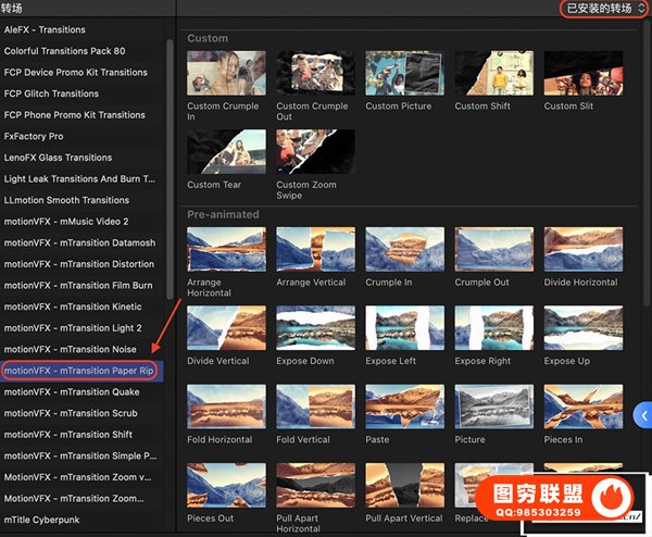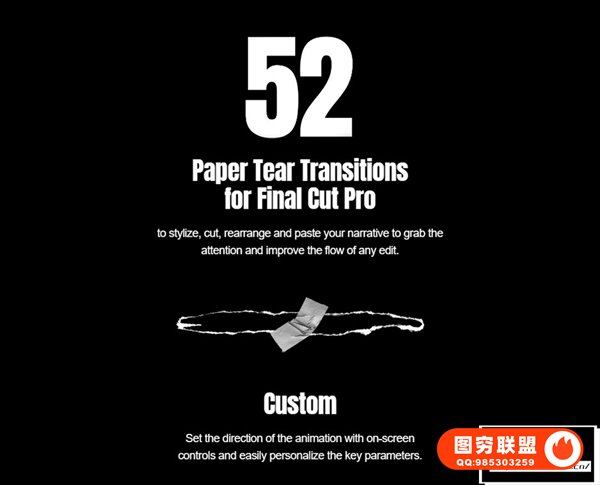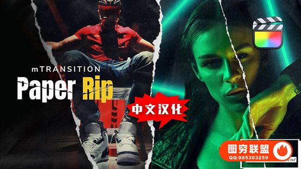 [FCPX插件]52种复古嘻哈杂志撕纸折痕拼贴效果风格化转场动画 motionVFX – mTransition Paper Rip 汉化中文版