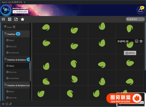 脚本Motion Presets 拥有3830个图层进入/退出预设,689个动画效果预设。凭借超过4500个预设的大量集合和AtomX扩展的无缝集成,实现令人惊叹的动态图形从未如此简单。使用AtomX脚本调用预设,可视化预览,双击即可直接使用于时间线,使用非常简单。Motion Presets 包是增强工作流程的终极解决方案。立即获取文本预设,将您的视频项目提升到一个新的水平!