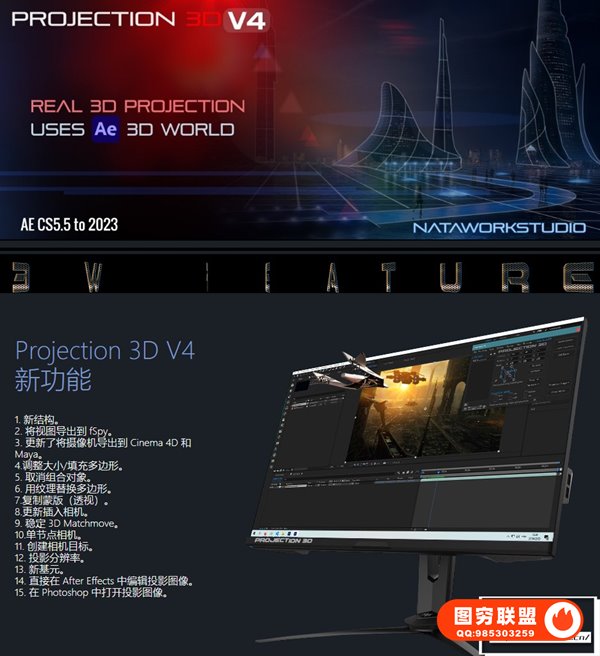 图穷联 » [AE脚本]平面图片投射三维空间摄像机视差动画 Projection 3D v4.0.3