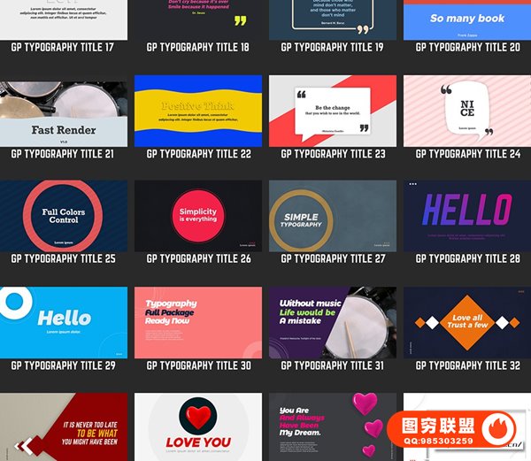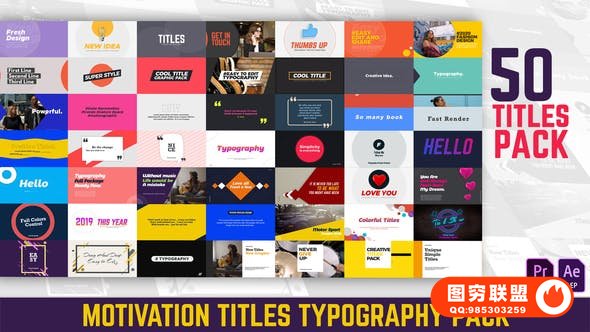 [AE/PR模板]50种创意动态文字标题图形排版设计动画 Motivation Titles Typography Pack
