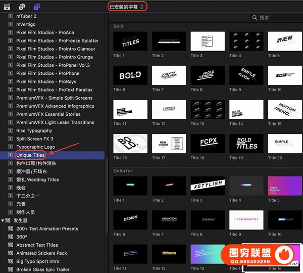图穷联 » [FCPX插件]1450个拉伸旋转缩放图形水墨光效VHS故障分割转场特效调色标题动画 Un