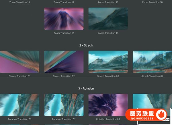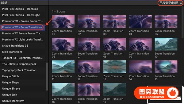 图穷联 » [FCPX插件]50种酷炫丝滑模糊缩放移动视觉冲击无缝转场预设 PremiumVFX -Z