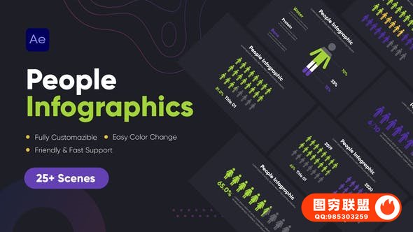 图穷联 » [AE模板]25个人物信息图表场景统计展示动画 People Infographics
