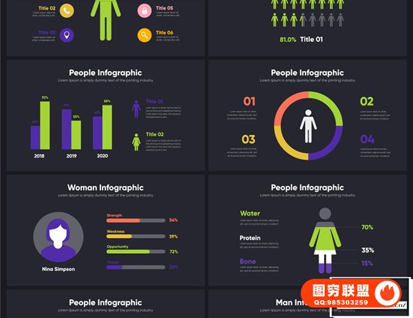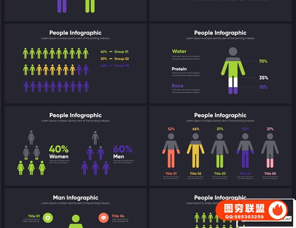人物信息图表 People Infographics 包含25 个以上的信息图表场景。该项目将帮助您创建自己的视频、解说、演示文稿等。所有场景都可以使用,只需从庞大的库中选取所需的内容即可构建您自己的故事。