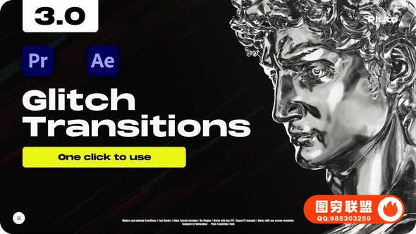 图穷联 » [AE PR模板]数码故障风格视频转场特效(含音效) Glitch Transitions