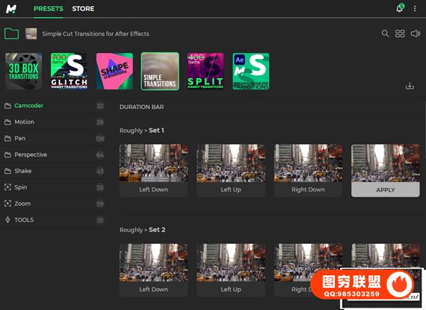 图穷联 » [AE脚本]2300组扭曲透视旋转超级无缝转场预设 Videolancer’s