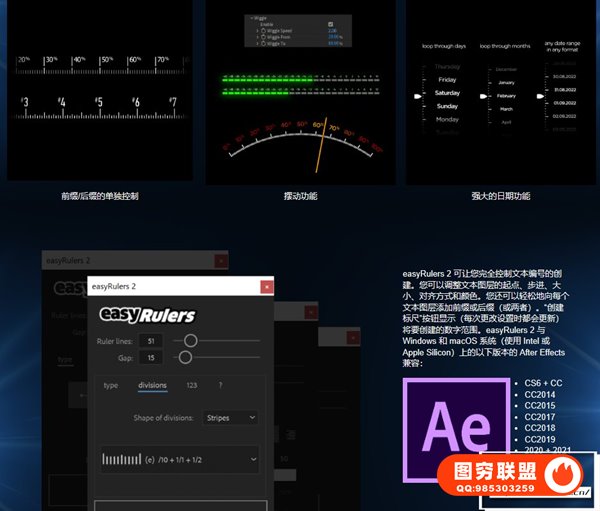[AE脚本]快速创建刻度标尺仪表盘HUD酷炫图形动画 easyRulers 2 v2.02