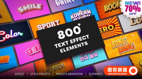 图穷联 » [AE脚本]800个复古卡通时尚广告宣传三维文字标题特效字幕动画预设 Text Effec