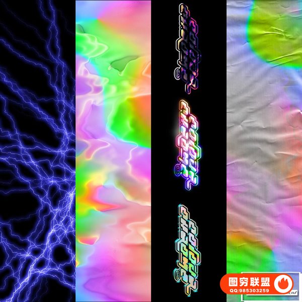 图穷联 » 400+炫彩发光金属镀铬锡箔反射纹理特效Logo文本图层样式闪电抽象图形PS设计套件 Al