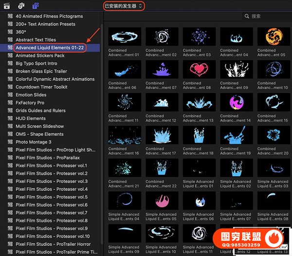 图穷联 » [FCPX插件]64个动漫卡通液体流动飞溅元素MG特效动画 Advanced Liquid
