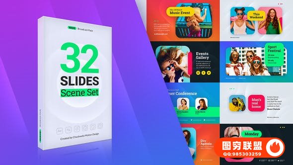 图穷联 » [AE模板]32组时尚现代图文排版动态展示动画 Wave Slides Scene Set