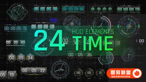 图穷联 » [AE模板]24种科技感全息投影HUD时间元素 HUD Elements Time