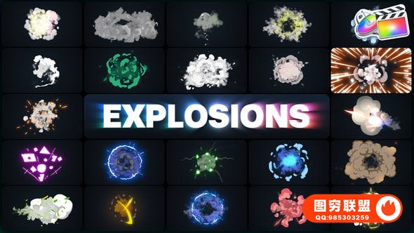 [FCPX插件]88种卡通爆炸彩色烟雾特效动画元素 Advanced Explosions Pack 23-44