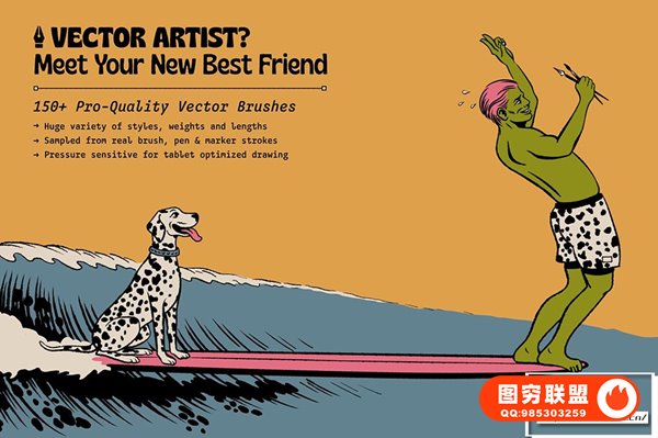 Bézier Buddy 拥有超过 150 种多功能矢量画笔,是您 Adobe Illustrator 的终极矢量墨迹伙伴。告别笨拙的线条,多种笔划尺寸设计用于适应几乎任何线条长度,平板电脑优化的压力设置,几乎没有拉伸或压缩。