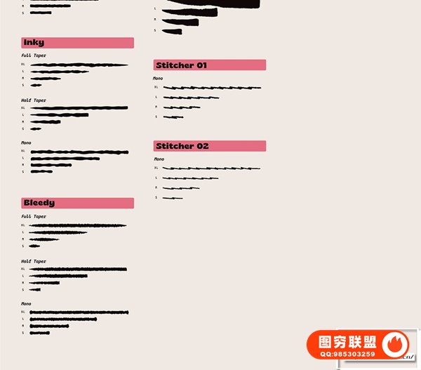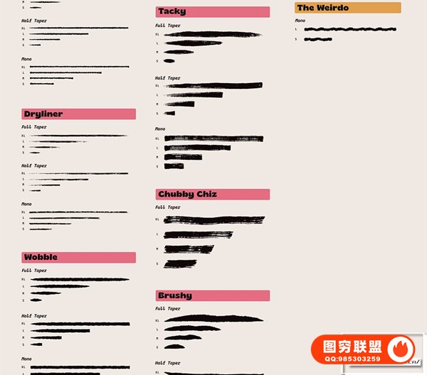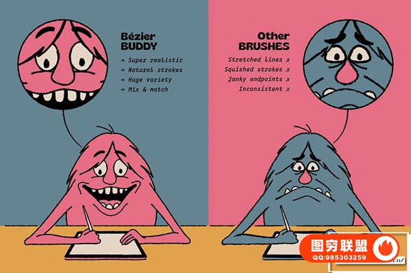 图穷联 » [矢量笔刷]140支手绘插画线条墨迹笔触压感画笔绘画Ai矢量笔刷 Bézier Buddy