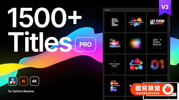 图穷联 » [达芬奇模板]1500个现代字幕条标题呼出指示线文字排版动画 Titles Pro V3