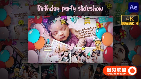 图穷联 » [AE模板]手绘过渡可爱儿童生日照片相册展示动画 Birthday Party Slide