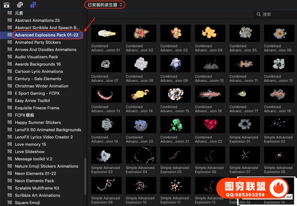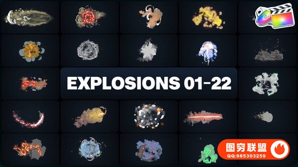 图穷联 » [FCPX插件]94种酷炫动漫卡通爆炸火焰彩色烟雾特效动画元素 Advanced Expl