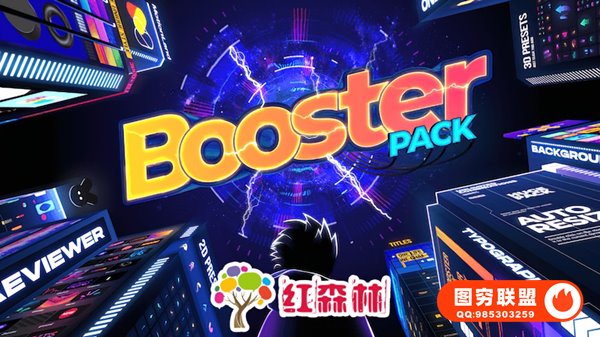 [AE脚本]3000种社交媒体图形标题排版转场音效背景图标动画预设 Booster Pac