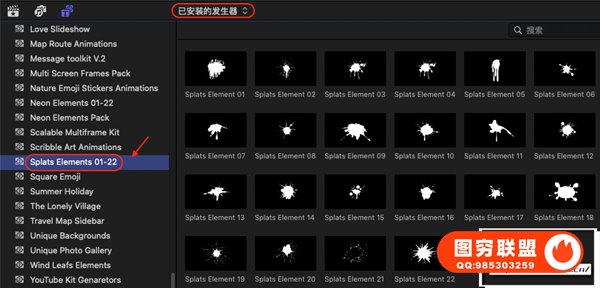图穷联 » [FCPX插件]22种卡通液体飞溅图形动画元素 Splats Elements 01-22