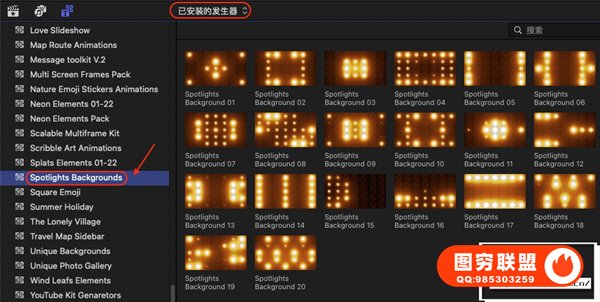 图穷联 » [FCPX插件]20个VJ舞台闪烁聚光灯背景动画 Spotlights Backgroun
