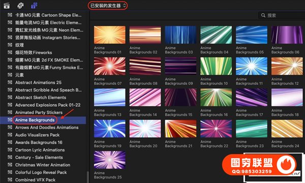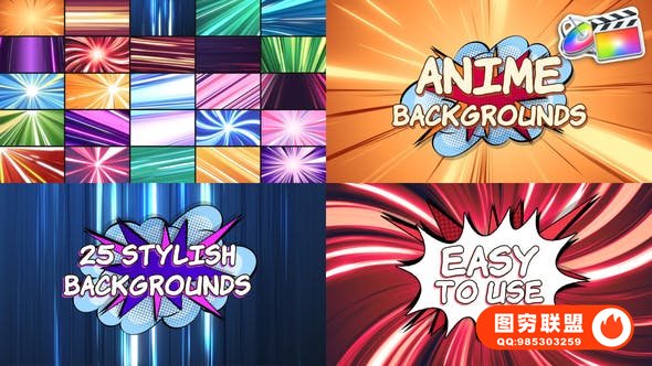图穷联 » [FCPX插件]25个彩色卡通动漫速度线背景循环动画 Anime Backgrounds