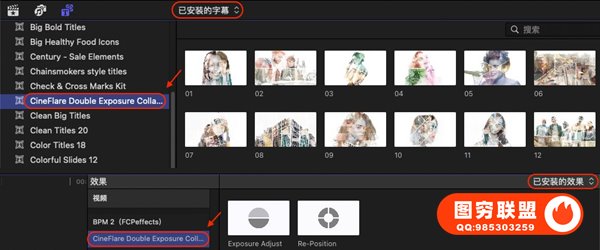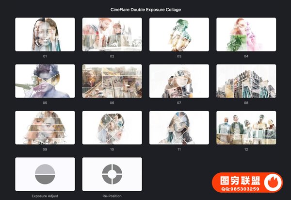 图穷联 » [FCPX插件]14组创意时尚栅格样式图片拼贴双重曝光效果预设 Double Exposu