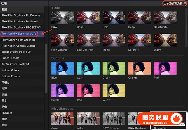 图穷联 » [AE/PR/FCPX插件]75组基本常用时尚电影Vlog视频调色滤镜 PremiumVF
