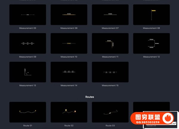 Lines and Routes 是让旅行行程更加生动的完美工具集,它拥有40个箭头,路线和测量文字标注动画,可用于制作用于说明地图和旅行路线的动画线条或者测量效果。