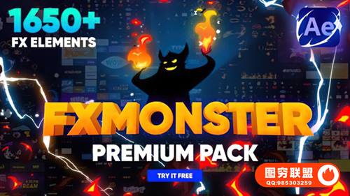 [AE脚本]1650种动漫卡通标题转场能量闪电烟雾火焰流体MG动画元素包 FX MONSTER – Premium Pack(FXMonster)