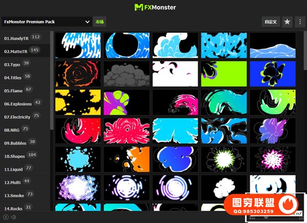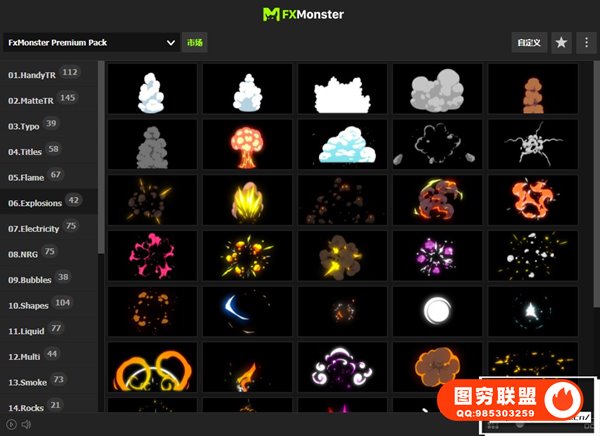 图穷联 » [AE脚本]1650种动漫卡通标题转场能量闪电烟雾火焰流体MG动画元素包 FX MONST