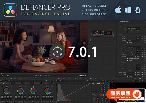 Dehancer Pro 是用于 DaVinci Resolve 中类似电影色彩分级和电影效果的OFX插件套件。数十种具有真正模拟控制的真实摄影和电影胶片。胶片颗粒、光效和光晕效果来完成外观。完全原生支持 ACES 管道。可以在达芬奇软件中给画面制作一些胶片边框,灼烧光效,噪点刮痕等复古视觉特效。