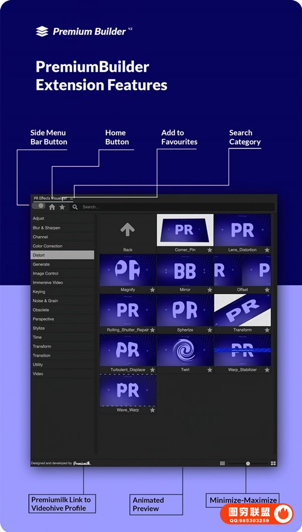 图穷联 » [PR脚本]模糊锐化调色风格化透视变换扭曲键控视觉特效预设 Effects Visuali
