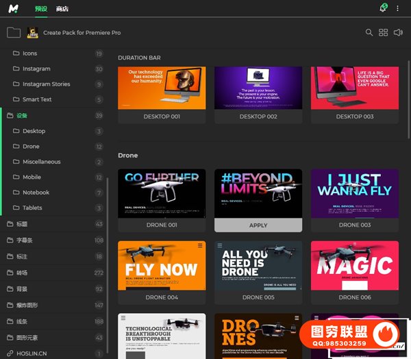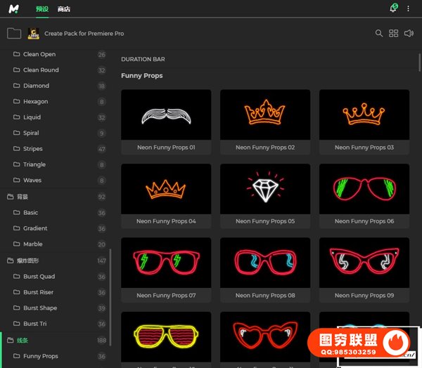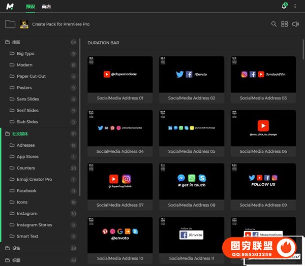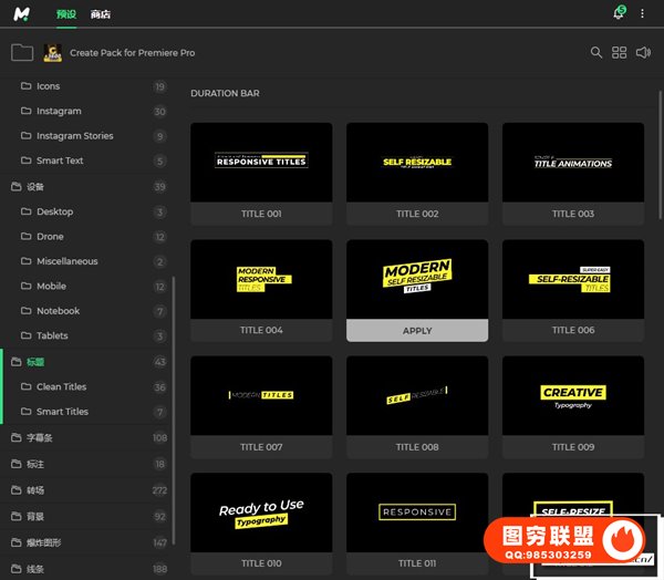 Create Pack Pr是一个巨大的元素包。只需单击一下即可使用超过 3,600 个元素。您还可以根据他们创建超过 12,000 个动画表情符号。Create Pack包含标题、字幕条、线条、爆炸图形、排版等元素动画共11种类型。采用Motion Bro 4脚本扩展,所有的文字、图片等都可以修改,可视化效果预览,需要那种效果双击即可生成。