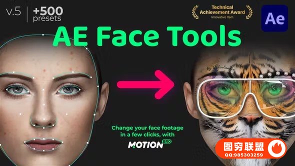 您经常在 After Effects 或 Premiere Pro 中安装脸部素材吗?!添加面部应用程序的功能,无需智能手机和神经网络!AE Face Tools是一个预设包,它将大大扩展 After Effects 的标准脸部跟踪功能。AE Face Tools 使用简单,它会检测带有面具的脸部并进行脸部跟踪(这是 After Effects 中的标准选项)。然后,在 Motion Bro 面板中,选择任何预设并一键添加。AE Face Tools v5 拥有超过 500 个脸部素材工具和预设支持任何分辨率(我们测试为4K)支持任何纵横比,无论方向如何 – 纵向或横向。包含视频教程。