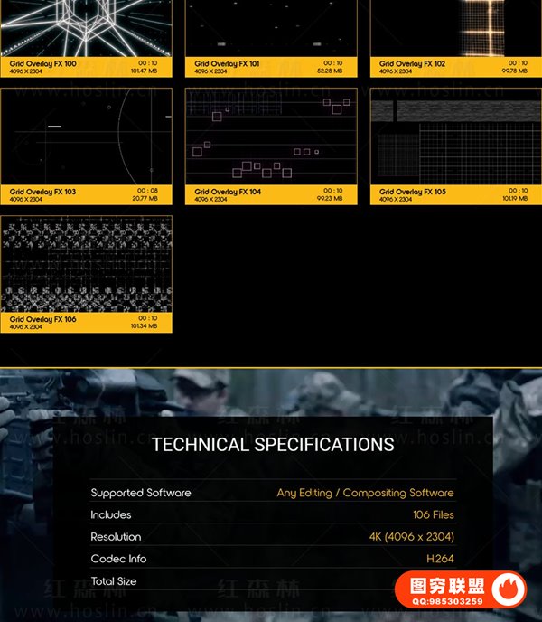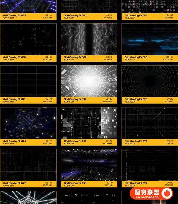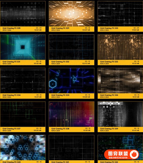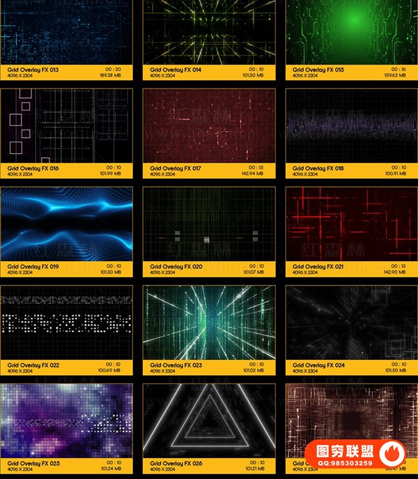 106个科技感粒子线条网格特效叠加动画,丰富的网格类型,精心打造,为您的作品增添科幻特效,非常适合从文本显示到制作中的实际电影合成的所有内容。它们使用简单,只需拖放和混合,我们做了繁重的工作,以确保每个剪辑都易于您使用。Grid Overlay FX没有透明通道,可修改混合模式(屏幕/滤色)即可与你的视频素材叠加使用。