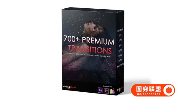 Premium Video Transitions共拥有700 多种不同的过渡。如缩放过渡,毛刺过渡,平移转场,摄像机移动转场等等。使用简单,包含视频教程,支持Premiere Pro和Final Cut Pro2款软件的不同版本。