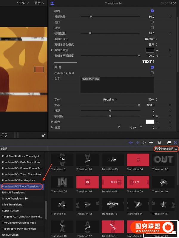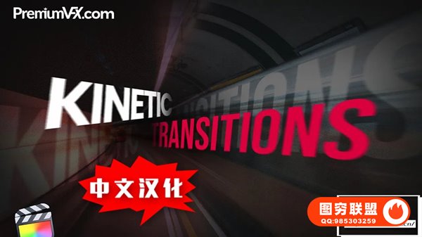 [FCPX插件]50个动感丝滑文字标题平移缩放旋转拉伸透视转场预设 PremiunVFX – Kinetic Transitions 汉化中文版