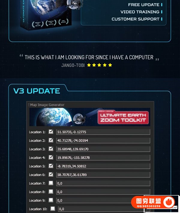 图穷联 » [AE模板]太空俯冲地球位置定点缩放动画展示工具包 Ultimate Earth Zoom