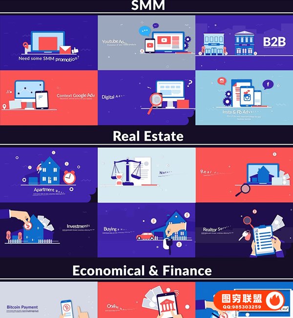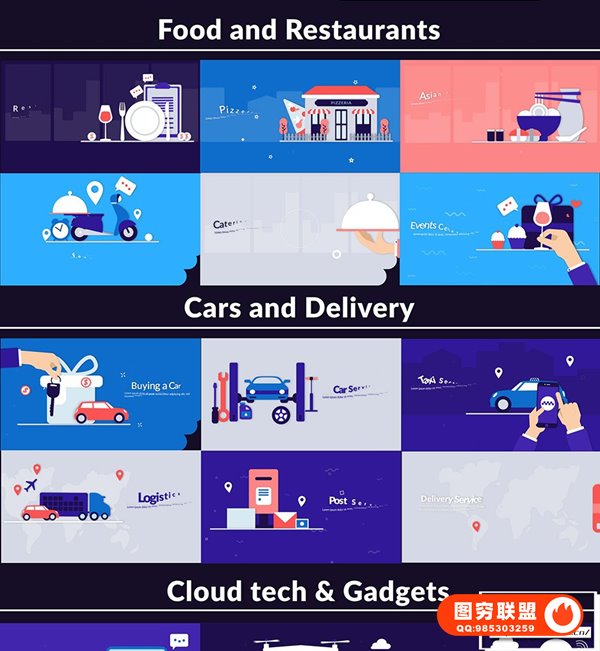 图穷联 » [AE模板]100组平面设计概念场景组合动画 Flat Design Concepts P
