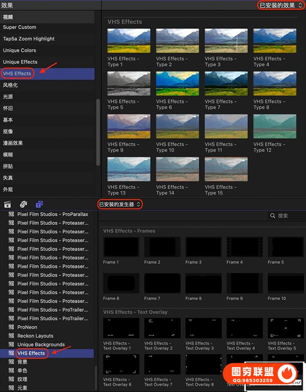 图穷联 » [FCPX插件]复古老旧失真故障VHS效果叠加动画 VHS Effects