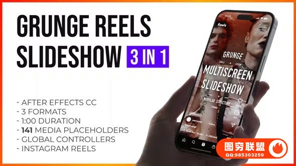 [AE模板]社交媒体网格多屏幻灯片排版动画 Grunge Grid Multiscreen Slideshow Reels and Stories