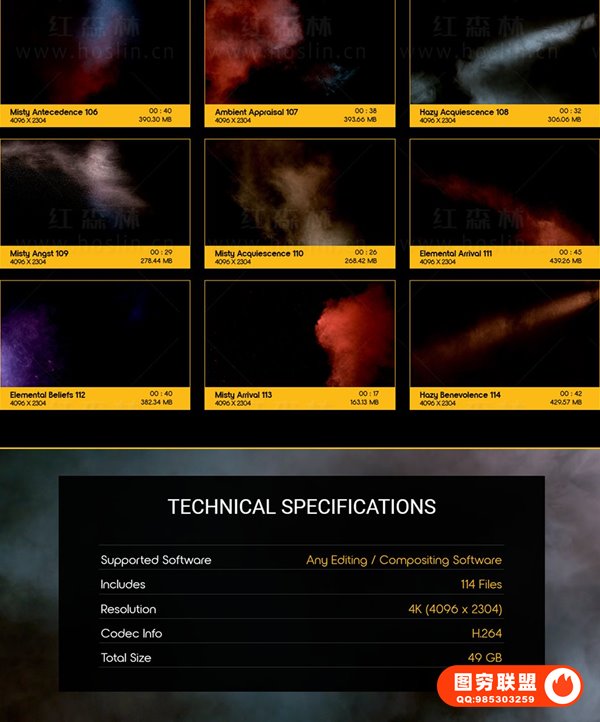 114个彩色烟雾气体弥漫气氛渲染动画4K视频素材,使用最新的Phantom 4K Flex相机进行有机拍摄。1000FPS 将在编辑时为您提供惊人的灵活性,并允许您为项目增加更大的影响。使用Atmospheric Backgrounds添加电影强度并使用此音量中的剪辑控制情绪。这些动画使用简单,只需拖放和混合。我们做了繁重的工作,以确保每个大气背景都易于您使用。无需任何插件,更改混合模式使您的创意栩栩如生。适用于VFX特效合成、画面叠加或背景中使用;增强画面观赏性。分辨率:4096*2304,4K高清;无透明通道(可修改混合模式去黑底透明叠加使用)。