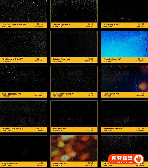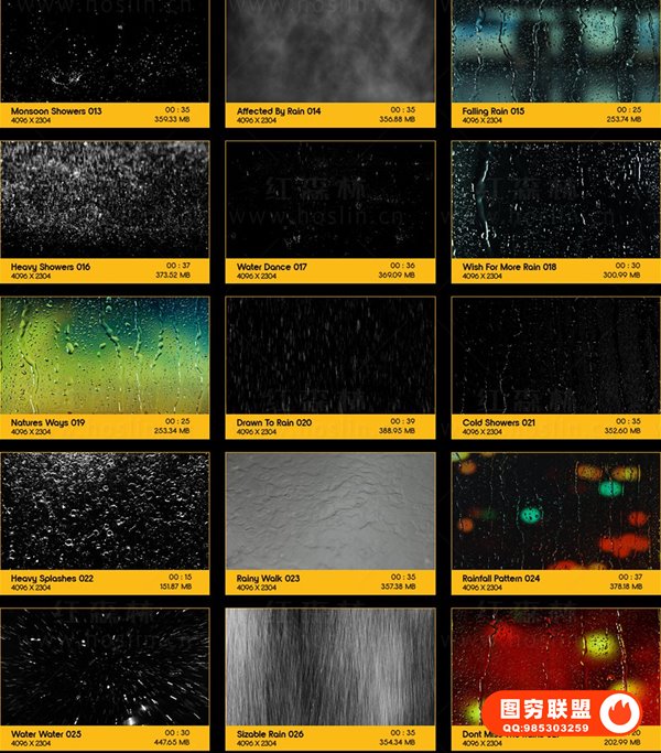 图穷联 » [4K视频素材]133个微风细雨狂风暴雨下雨雨水雨滴雨珠4K动画 BBV33 -Rain