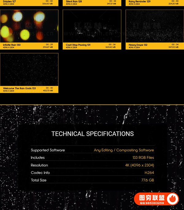 133个狂风暴雨下雨雨水动画4K视频素材,使用最新的Phantom 4K Flex相机进行有机拍摄。1000FPS 将在编辑时为您提供惊人的灵活性,并允许您为项目增加更大的影响。大雨阵雨狂风暴雨即将来袭,对于您的下一个项目,在您的镜头中添加一些降水,并观看它以前所未有的方式栩栩如生。Rain Fall使用简单,只需拖放和混合。我们做了繁重的工作,以确保每个雨水动画都易于您使用。无需任何插件,适用于VFX特效合成、画面叠加或背景中使用;增强画面观赏性。分辨率:4096*2304,4K高清;无透明通道(可修改混合模式去黑底透明叠加使用)。