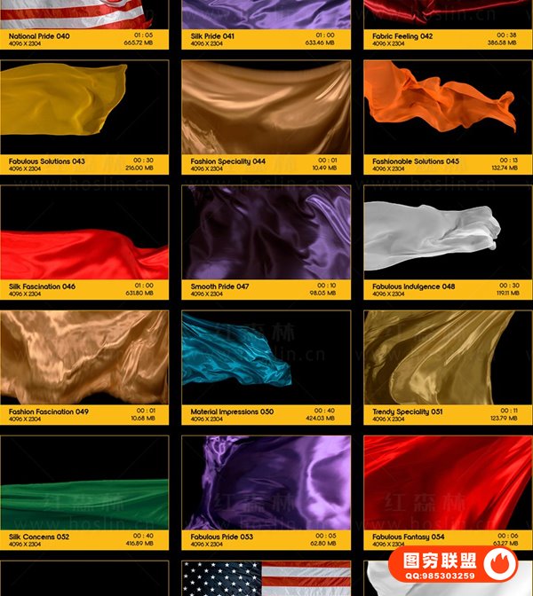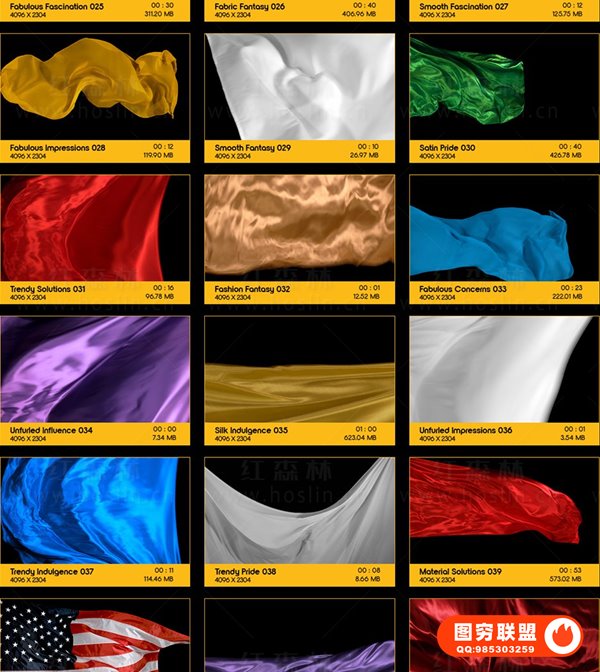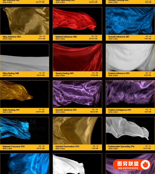 图穷联 » [4K视频素材]103个轻盈优雅丝绸布料飞舞飘扬背景转场4K动画 BBV34 -Fabri