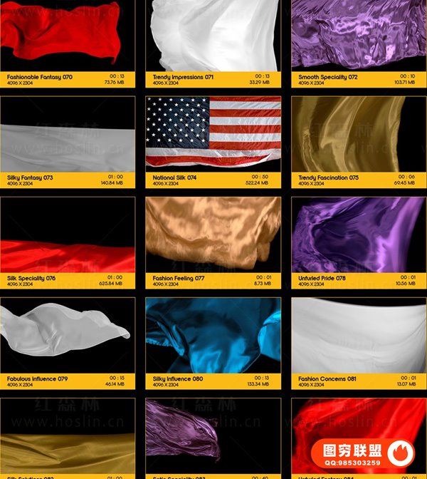 特别说明:此素材提供的是丝绸织物飘舞飞扬动画,没有预览视频中的实拍人物风景文字图片等素材,也没有AE模板工程。